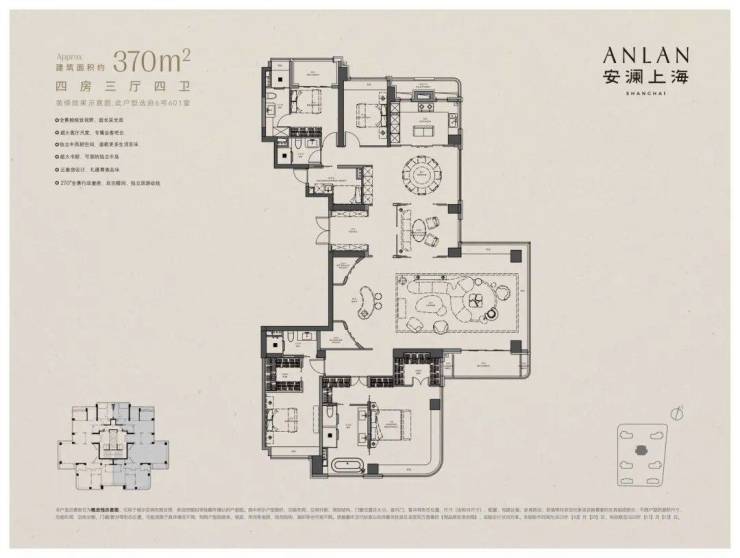 以下为建面约370㎡户型过程稿亮点: