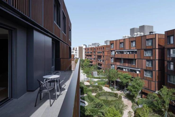 项目容积率1.2,由18栋6层楼的叠加组成,整体呈倾斜镜像状排列,为增强隐私防护采用客厅、阳台位置交替的设计,配有私人电梯,地下设有停车场可供业主专用。