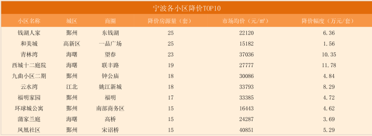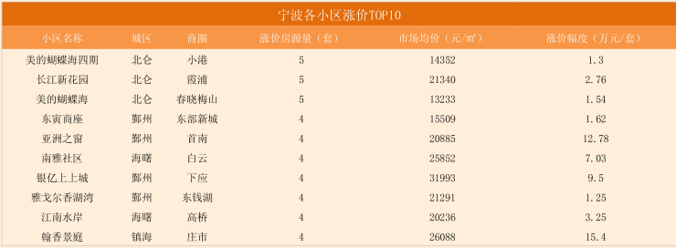 4、涨价房源量美的蝴蝶海四期小区居首,降价房源量钱湖人家小区居首