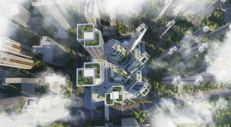 总建面近50万㎡的超级大社区。由7栋最高约200米的建筑组成,包括超甲级写字楼、无界空间和互联网总部大楼。约50万方呈现东静西动的震撼布局,把更好位置留给了居住生活,把繁华汇于西面,无边界的超级大堂,则将业态相互连接,让业主从容往来。