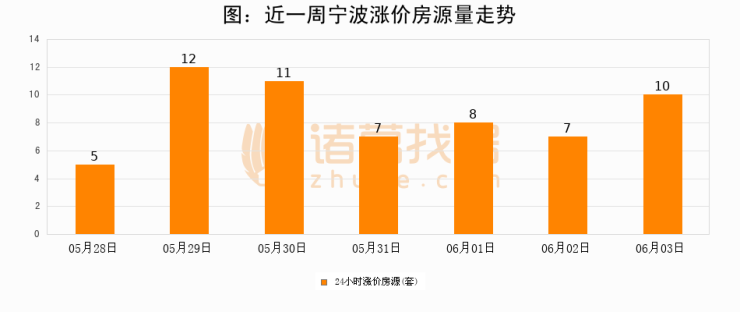 根据诸葛找房数据显示,宁波24小时涨价房源量为10套,较06月02日增加3套,环比上涨42.9%。与此同时,涨价房源占比小幅扩大,业主信心有所提升。