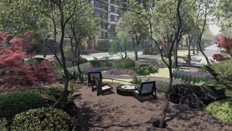 难得的是,中环玲珏庭的精工品质不止局限于室内。在未来的场景中,一座“一环五进八主题”的鲜氧园林流淌在建筑之间。