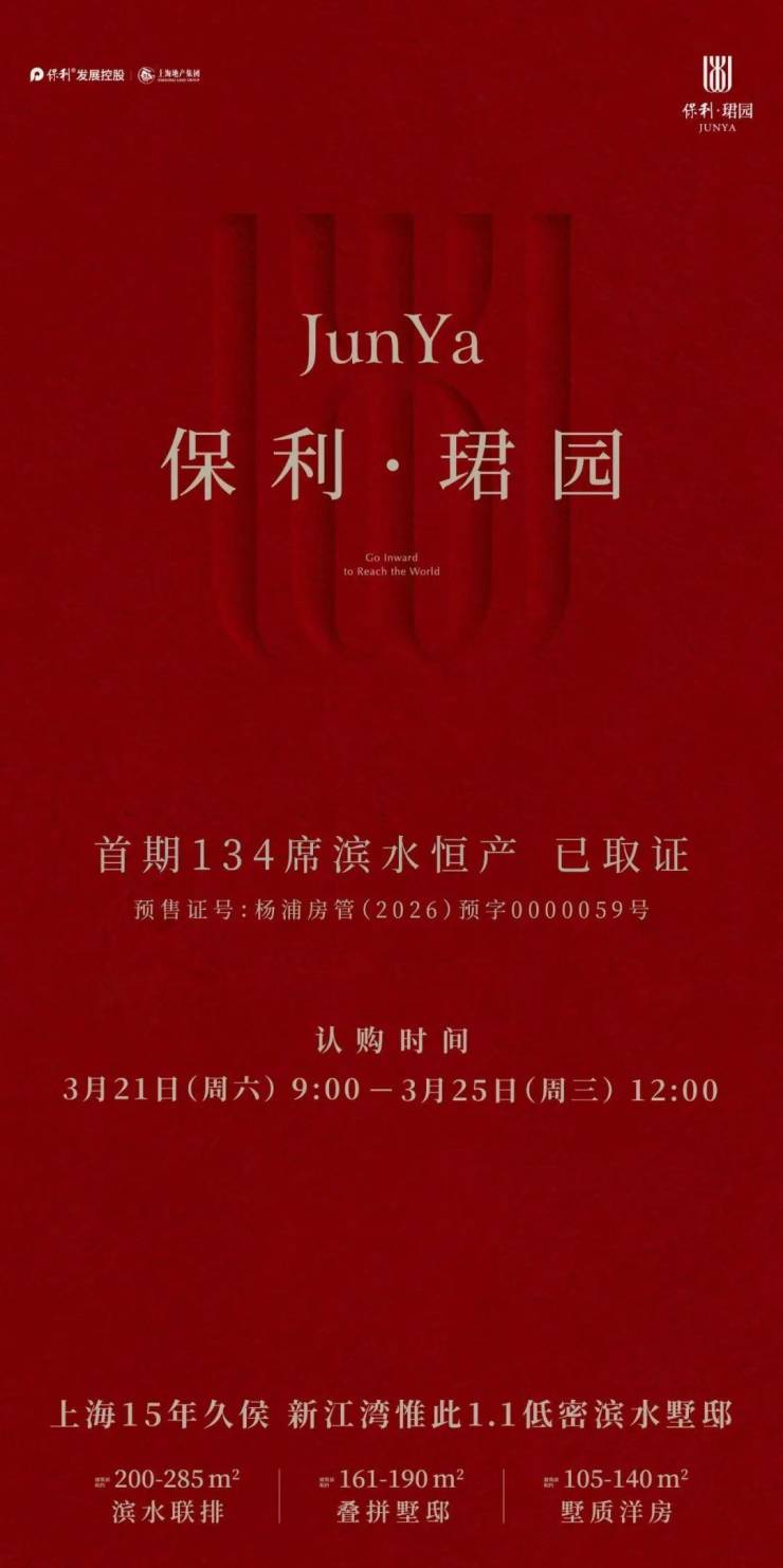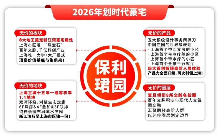 在上海主城改善愈发稀缺的当下,保利·珺园以不可复制的稀缺性,成为真正经得起时间考验、承载家族传承的传世资产,亦是2026 年上海高端人居的价值标杆与终极答案,你还在等什么?