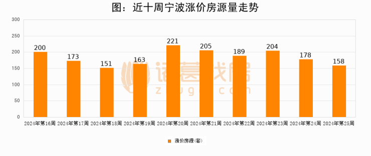 从调价房源来看,第25周宁波涨价房源158套,较上周下降11.2%。与此同时,25周涨价房源占比回落0.69个百分点,业主信心小幅波动,购房者可则需入市。