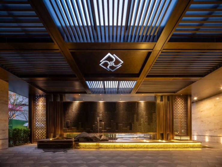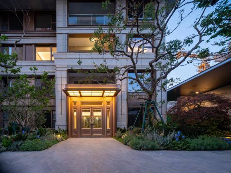 【浦发莲园】归家仪式的设计独具匠心,巧妙融入法国进口的圣罗兰奢石、伊朗进口的白雪公主透光玉石、巴西进口的玉曼米黄大理石,以及定制纹样金属,用打造艺术品的手法铺就业主的归家动线。