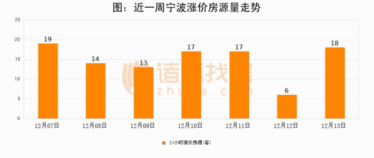 根据诸葛找房数据显示,宁波24小时涨价房源量为18套,较12月12日增加12套,环比上涨200%。与此同时,涨价房源占比小幅扩大,业主信心有所提升。