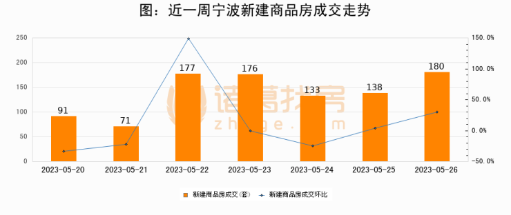【宁波成交日报】05月26日新房成交180套;涨价房源118套