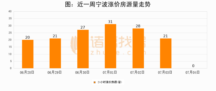 根据诸葛找房数据显示,宁波24小时涨价房源量为0套,较07月03日减少21套,环比下降100%。与此同时,涨价房源占比小幅回落,对于购房者来说是一个入市窗口期,购房者可抓住时机入市。