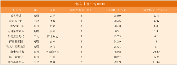 二手房市场周报|2021年第40周宁波市场均价下降,盛世华城涨价房源量居首