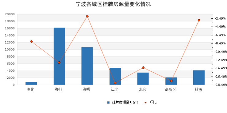 二、高新区环比涨幅居首,鄞州挂牌房源量先进