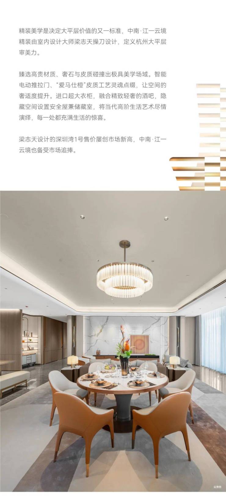 更难想象的是,在当前杭州大平层产品趋同的背景之下,中南·江一云境,不惜重金首创三层奢装入户大堂。地库大堂可以做到奢装入户、三重空间营造,地面奢石和地下挑高空间造景,每一重皆是奢华的礼序!