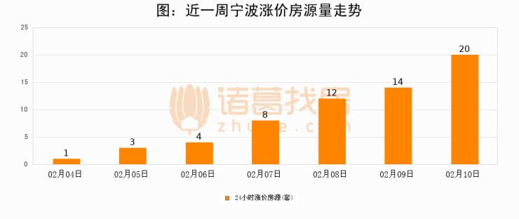 根据诸葛找房数据显示,宁波24小时涨价房源量为20套,较02月09日增加6套,环比上涨42.9%。与此同时,涨价房源占比小幅扩大,业主信心有所提升。