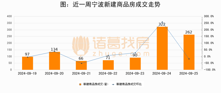 【宁波成交日报】09月25日新房成交262套;涨价房源64套