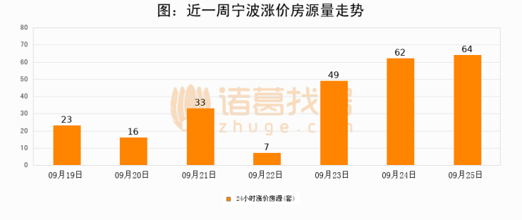 根据诸葛找房数据显示,宁波24小时涨价房源量为64套,较09月24日增加2套,环比上涨3.2%。与此同时,涨价房源占比小幅扩大,业主信心有所提升。