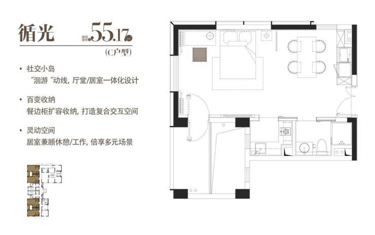 C|循光 建面55.17 m² 一室一厅一厨一卫