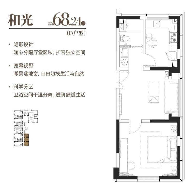 D|和光 建面68.24m² 一室一厅一厨一卫