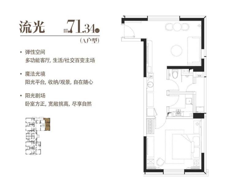 A|流光 建面71.34m² 一室两厅一厨一卫