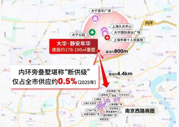 大华·静安年华,正是在这片珍贵土地之上,带来静安内环旁罕见的3000万级墅居选择,堪称静安十年一遇的叠墅孤品,以不可复制的核心占位,成为市场真正值得珍藏的稀缺标的。