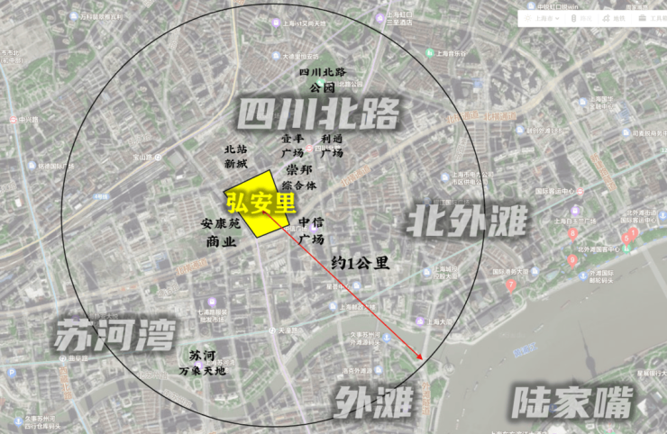 核心商圈:北外滩来福士、白玉兰广场(约1.2公里)
