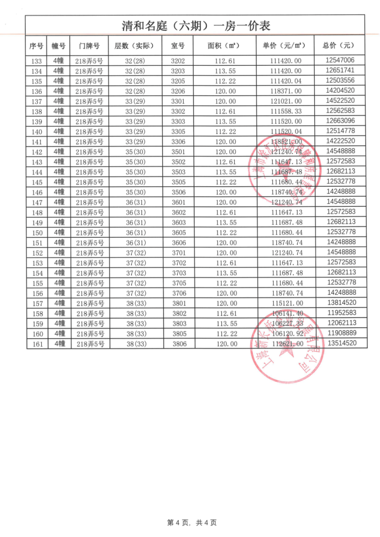 前期一房一价表公示 :