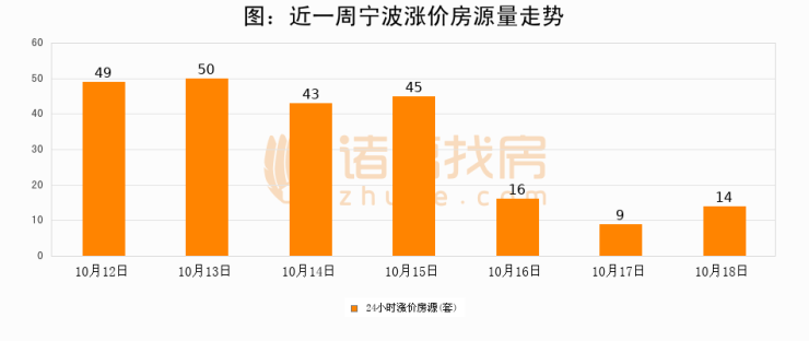 根据诸葛找房数据显示,宁波24小时涨价房源量为14套,较10月17日增加5套,环比上涨55.6%。与此同时,涨价房源占比小幅扩大,业主信心有所提升。