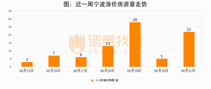 根据诸葛找房数据显示,宁波24小时涨价房源量为22套,较08月30日增加17套,环比上涨340%。与此同时,涨价房源占比小幅扩大,业主信心有所提升。