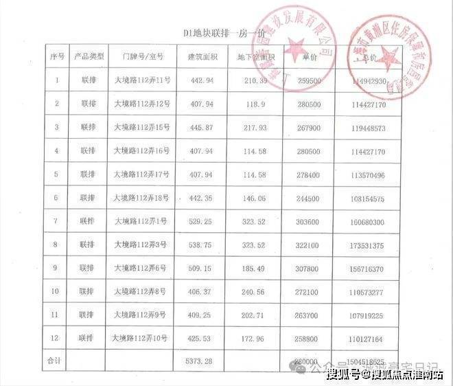 【一房一价表】