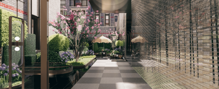 特别设计了八大映象典藏场景景观节点,有百年梧桐下的静谧巷道串联各景观节点,还有充满文化积淀的海派艺术庭院等,营造出精致、典雅的高阶生活氛围。