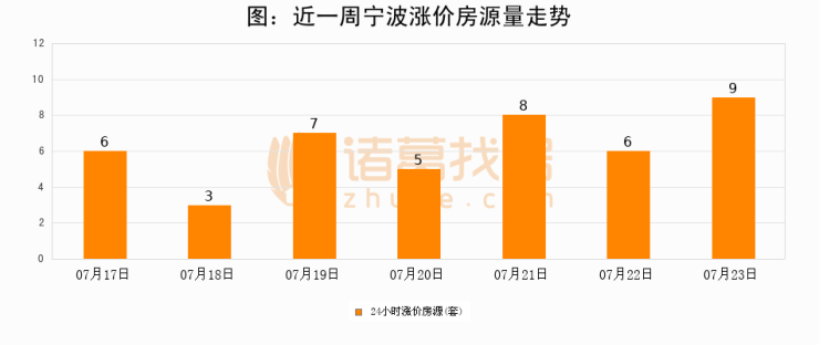 根据诸葛找房数据显示,宁波24小时涨价房源量为9套,较07月22日增加3套,环比上涨50%。与此同时,涨价房源占比小幅扩大,业主信心有所提升。