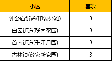 其中钟公庙街道(印象外滩)、白云街道(联南花园)、首南街道(千江月园)、古林镇(薛家新家园)成交3套,并列榜首。