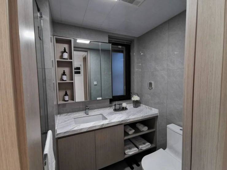 实地展现在眼前柔和的灯光与岩板搭配,轻奢考究又不失内敛,以比对效果图的真实落地还原度,在现场提前感受到生活的质感!
