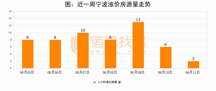 根据诸葛找房数据显示,宁波24小时涨价房源量为2套,较06月10日减少4套,环比下降66.7%。与此同时,涨价房源占比小幅回落,对于购房者来说是一个入市窗口期,购房者可抓住时机入市。