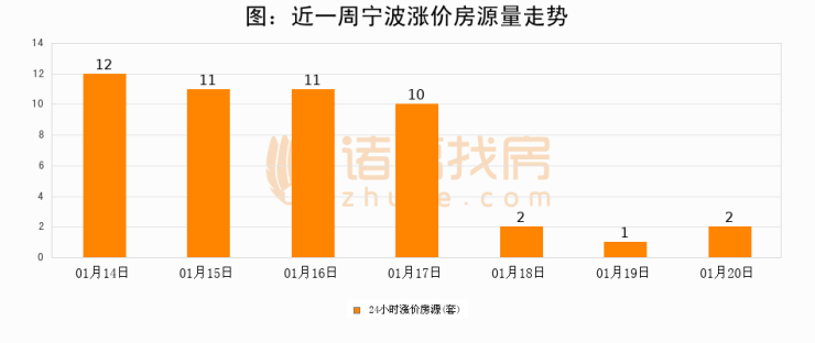 根据诸葛找房数据显示,宁波24小时涨价房源量为2套,较01月19日增加1套,环比上涨100%。与此同时,涨价房源占比小幅扩大,业主信心有所提升。