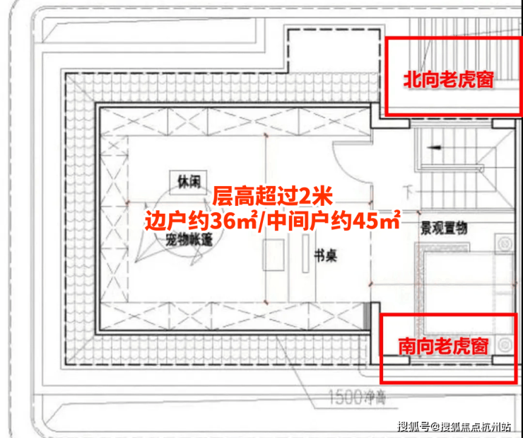 ④, 同样拥有面积可观及采光通透的 闷顶空间 (边户约37㎡/中间户约38㎡)