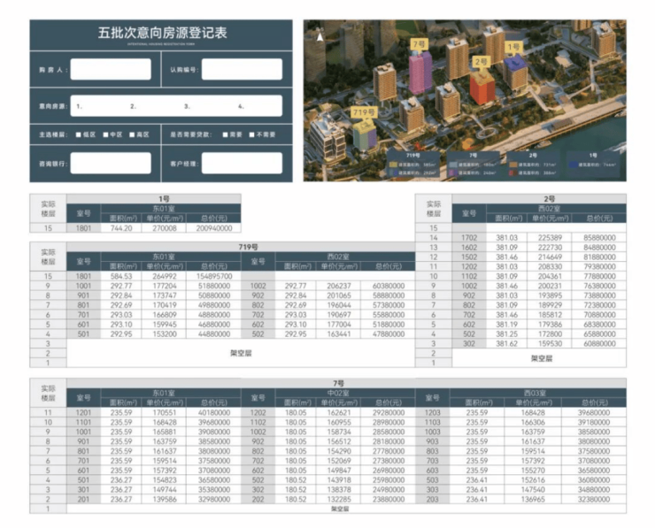 项目主打建面约180–388㎡一线江景大平层,第五批次加推收官房源,稀缺性极强: