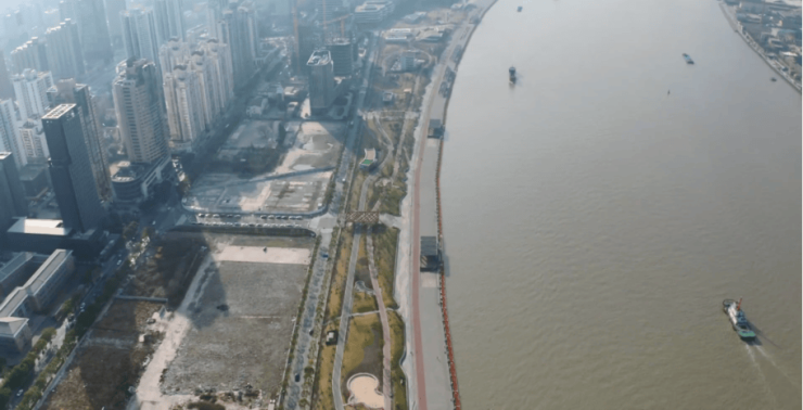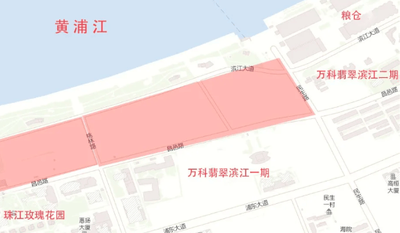 地块独占陆家嘴滨江约1.5km岸线,南面是万科翡翠滨江、西侧陆家嘴壹号院、恒大滨江华府,东侧民生路渡口。