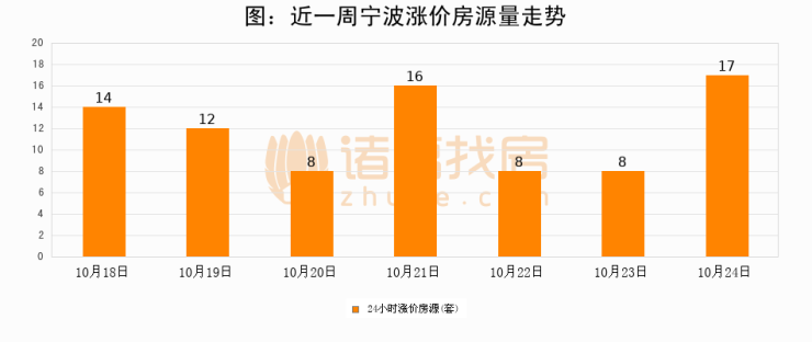 根据诸葛找房数据显示,宁波24小时涨价房源量为17套,较10月23日增加9套,环比上涨112.5%。与此同时,涨价房源占比小幅扩大,业主信心有所提升。