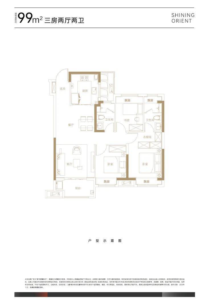 另外99平的户型还是全装修交付,对于后期业主的入住是非常省心的,这个户型格局方正,空间敞亮,适合一家三口居住。