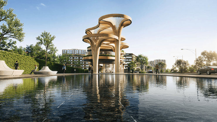 项目由追求自然生命与建筑共生的设计大师--高田浩一与上海天华建筑设计有限公司联袂打造;美国谷歌总部、斯坦福大学的景观设计公司--美国SWA,承担了自由女神像照明工程、华盛顿美国国会访客中心灯光设计公司--BPL,前瞻世界风尚强强联合打造了这座“领先时代10年的作品”。