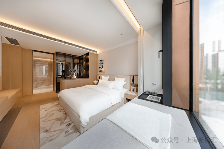 尤其是两间卧室,空间相当出众。主卧更是带步入式衣帽间+卫生间,堪比约120㎡以上户型的主卧空间。
