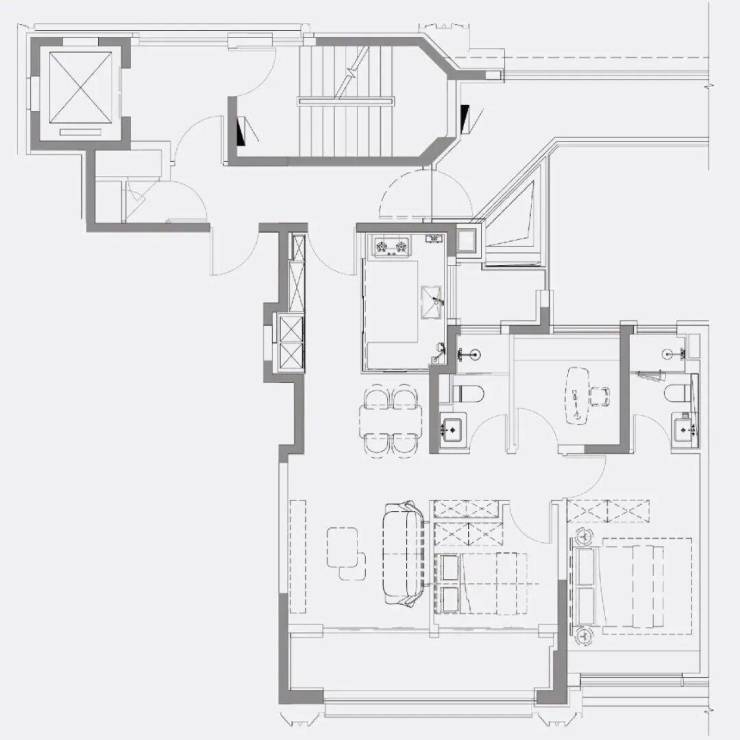 客厅、主卧、次卧,三个最重要的家庭空间全部朝南,形成超宽的采光面。