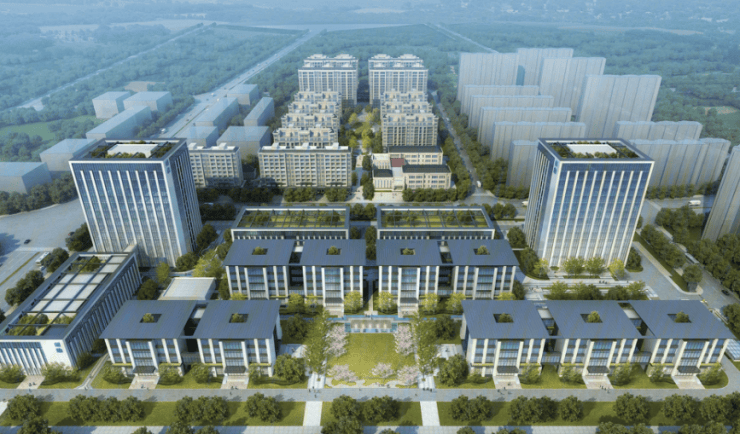规模指标 :占地约 48544㎡(72.69 亩) ,总建面约 11.24 万㎡容积率 1.6绿化率 35% ;共 9 栋楼(4–5 层花园独栋 + 高层办公); 现房 (2023 年 8 月交付),毛坯 / 公共部分精装。