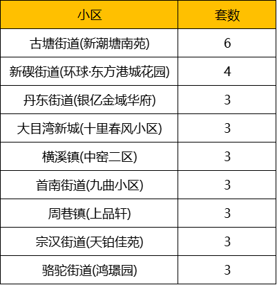 其中古塘街道(新潮塘南苑)成交6套,位列榜首。