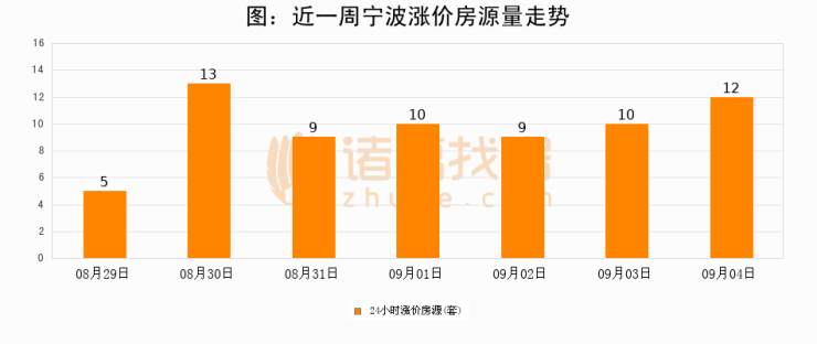 根据诸葛找房数据显示,宁波24小时涨价房源量为12套,较09月03日增加2套,环比上涨20%。与此同时,涨价房源占比小幅扩大,业主信心有所提升。