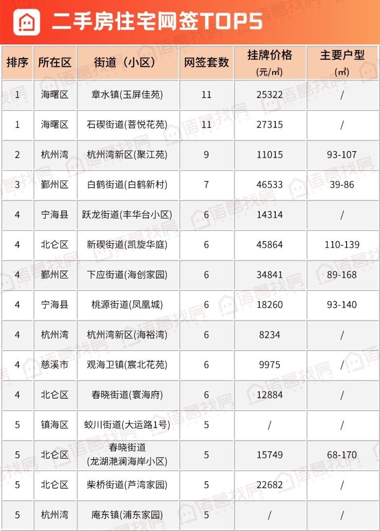 上周二手房主要成交小区TOP5