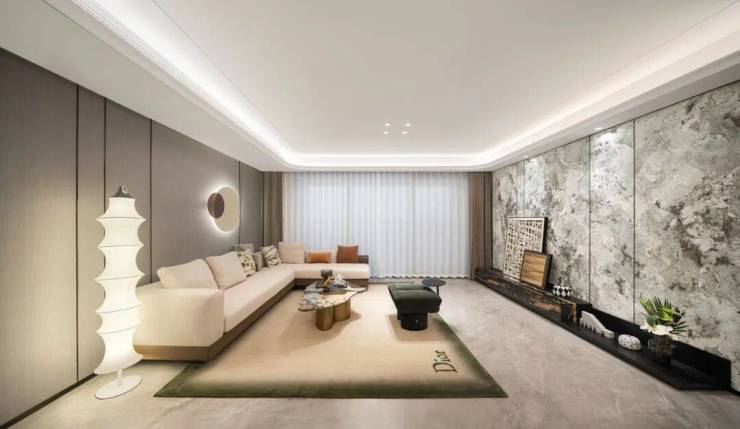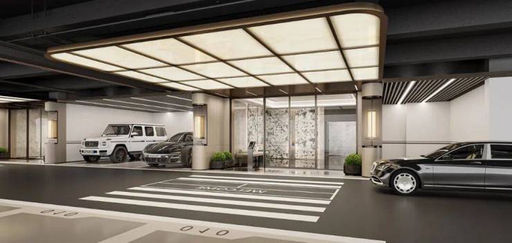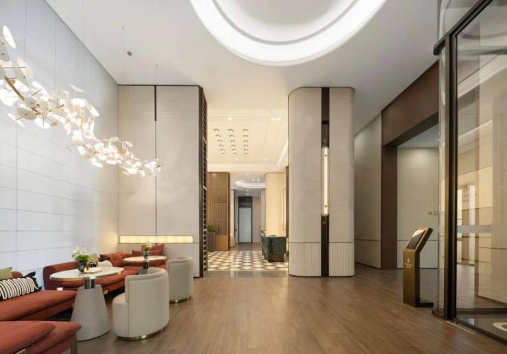 虽然体量不大,却舍得铺排气场。它定制了璞丽酒店式的长廊门庭,别的楼盘在拼门头宽度,它在营造归家的“纵深仪式感”。
