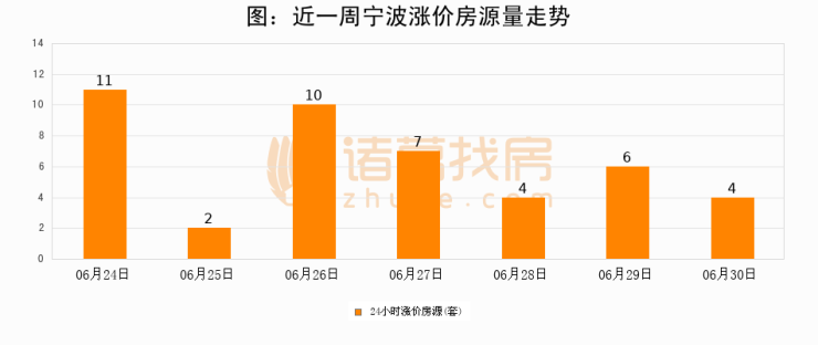 根据诸葛找房数据显示,宁波24小时涨价房源量为4套,较06月29日减少2套,环比下降33.3%。与此同时,涨价房源占比小幅回落,对于购房者来说是一个入市窗口期,购房者可抓住时机入市。