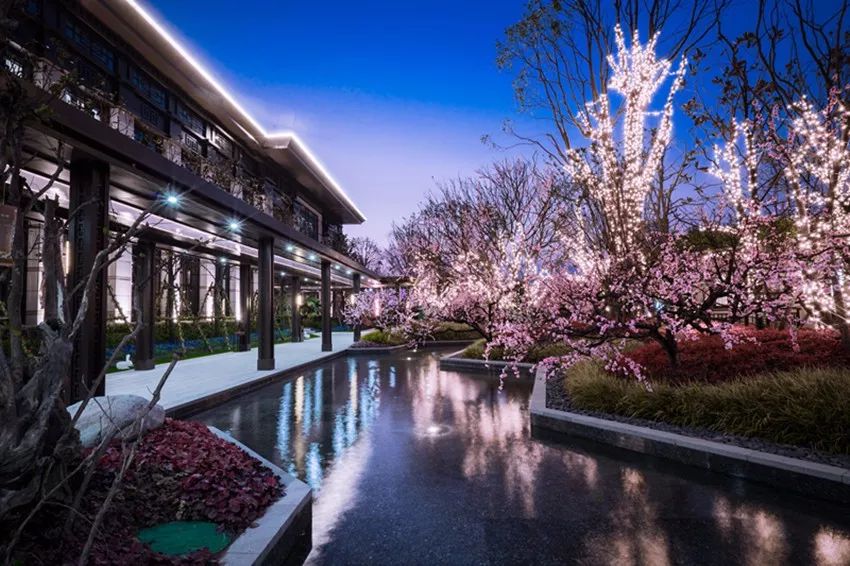 小区的里还有一座无比精致的新中式园林:2600方中心园林湖,精致的荷花池,有高大的树木,低矮的灌木,还有广阔的草坡,不但层次丰富,光名贵树种就多达68种。