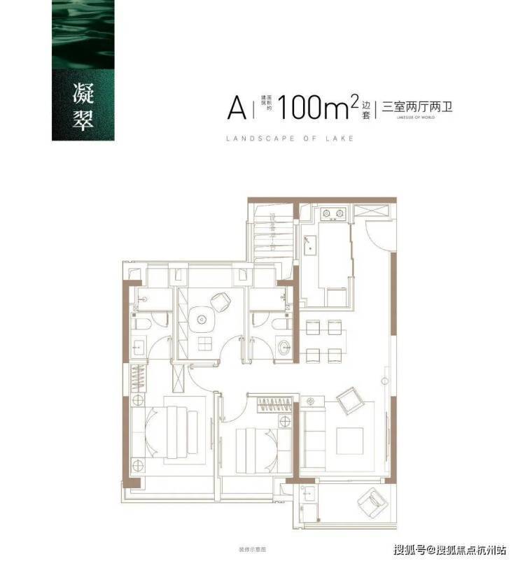 建面约100㎡3房2厅2卫, 做到了三开间朝南+主卧套房设计+动静分离+全卧室带飘窗,功能性和尺度感完美结合的3房户型。