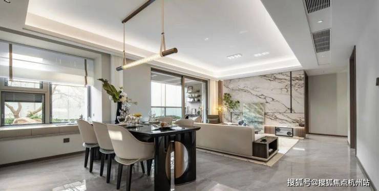 在建筑设计上, 映翠府以大家经典产品设计的迭代,体现杭派精工系的特质与典雅气度,营造简洁且有质感的公建化现代派立面,融入提升新城城市形象。